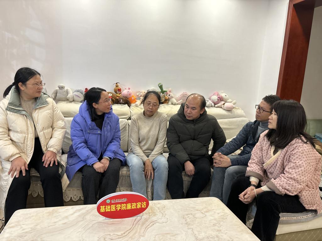 为深入贯彻落实习近平总书记关于注重家风家训的重要指示精神,引导广大教职工崇廉洁、正家风的浓厚家庭氛围,12月18日晚上,太阳成tyc33455cc党委书记宾晓芸一行到公司病原生物学与免疫学教研室黄干荣老师家开展廉政家访活动。