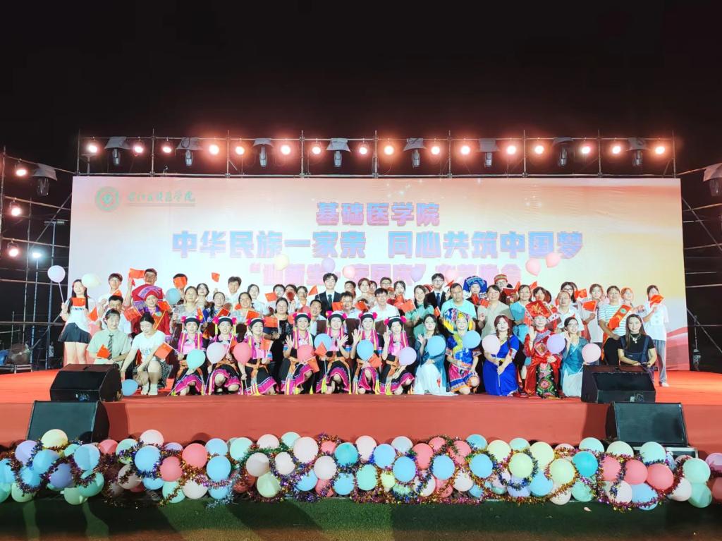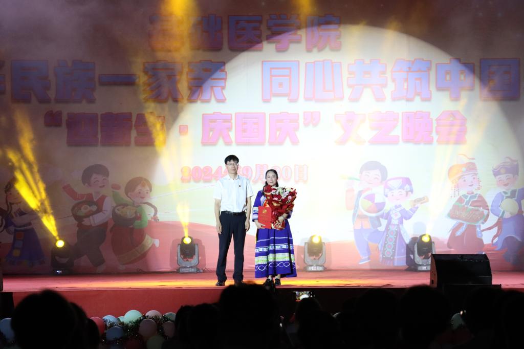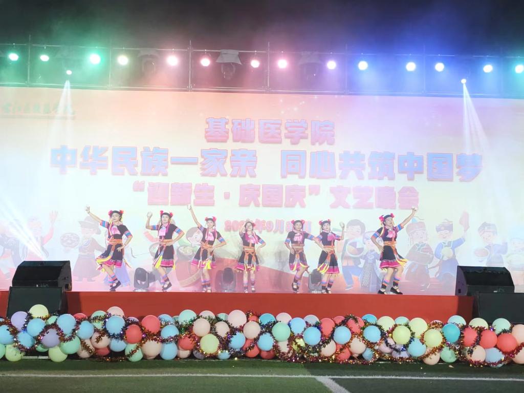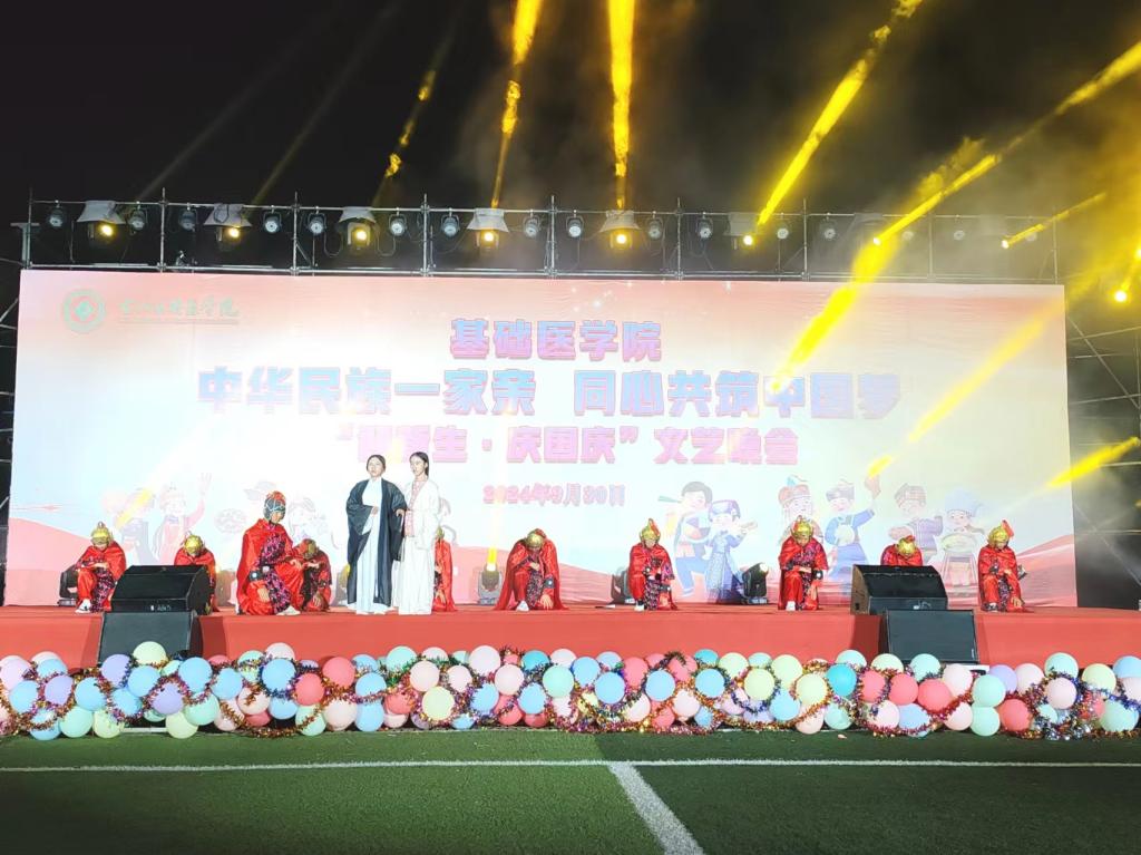 踏时代之浪,焕青春之光。此次文艺晚会的成功举办,不仅璀璨绽放了绚烂多彩的校园文化与师生们横溢的才华,更进一步铸牢了中华民族共同体意识。在国庆佳节到来之际,新同学们的加入为校园注入了无限生机与活力,他们与师长们共聚一堂,共襄盛举,共同庆祝祖国的繁荣昌盛。展望未来,这片充满希望与机遇的土地将见证新同学们茁壮成长的每一步,他们定将以饱满的热情、坚定的信念,以医员工的仁心仁术和使命担当,为实现中华民族伟大复兴的中国梦贡献自己的青春力量,共同书写民族团结进步的崭新篇章。