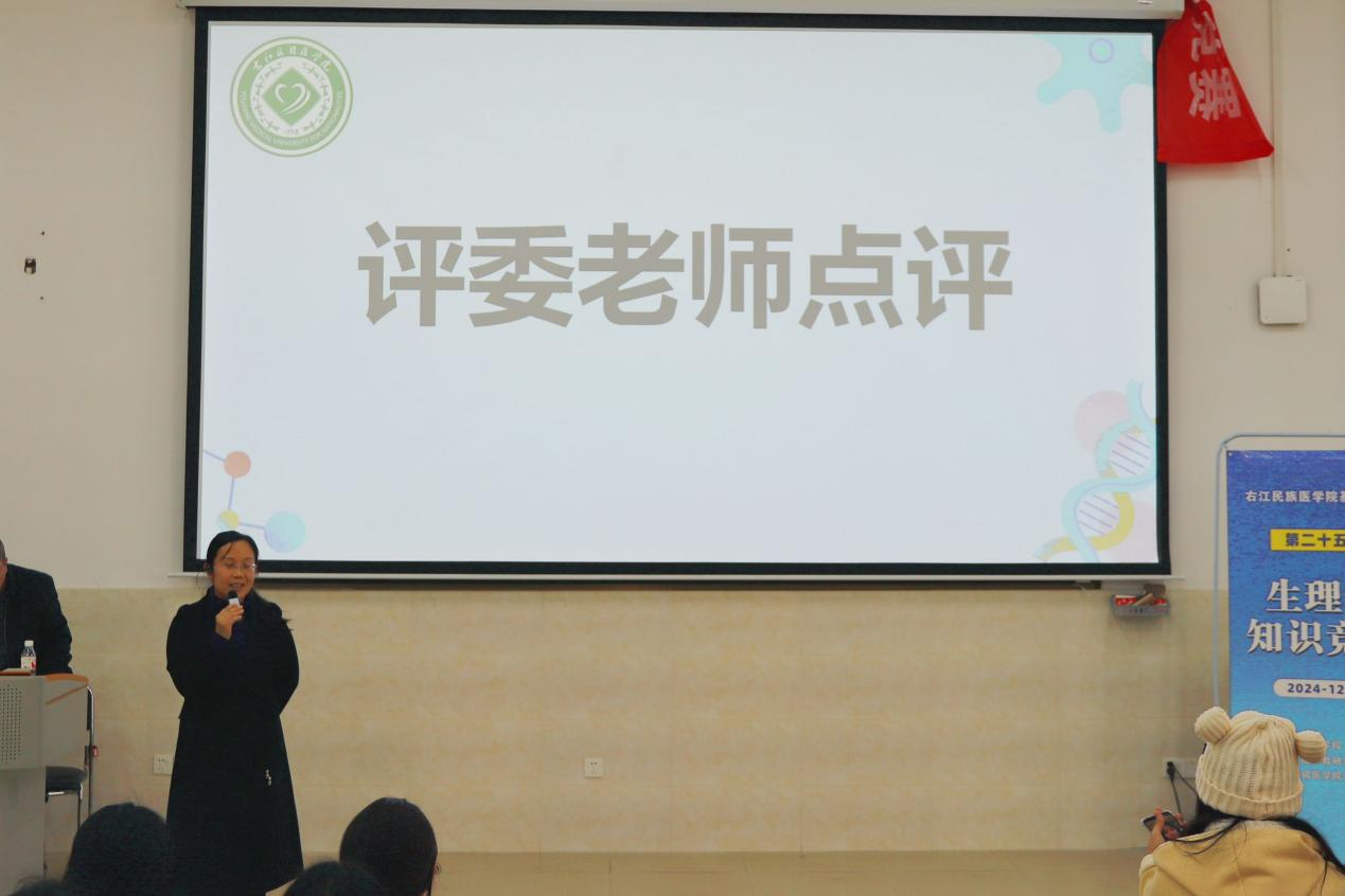 生理学教研室黎昀老师在总结点评中对同学们的出色表现给予充分肯定,同时深入分析了同学们在竞赛过程中的亮点和不足,为同学们提供了宝贵的反馈。最后,黎昀老师鼓励同学们将竞赛中展现出的积极态度和坚韧精神延续到日常学习和生活中,勇于面对挑战,不断探索生理学的新境界。