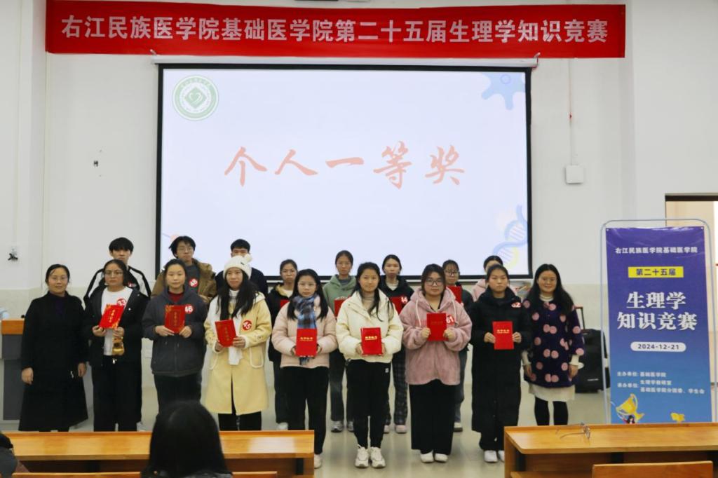 为点燃员工对生理学的探索热情,进一步夯实生理学知识体系,同时提升员工团队合作能力,太阳成tyc33455cc于2024年12月21日举办了第二十五届生理学知识竞赛,以营造一个积极向上、朝气蓬勃的学习氛围。来自2023级临床医学本科班1-12班、2023级临床医学本科(教改班)、2023级临床医学本科(农村订单班)1班、2023级口腔医学本科班、2023级医学影像本科1-4班各班一支参赛队伍,参加了本次竞赛。生理学教研室全体老师担任了本次竞赛的评委。