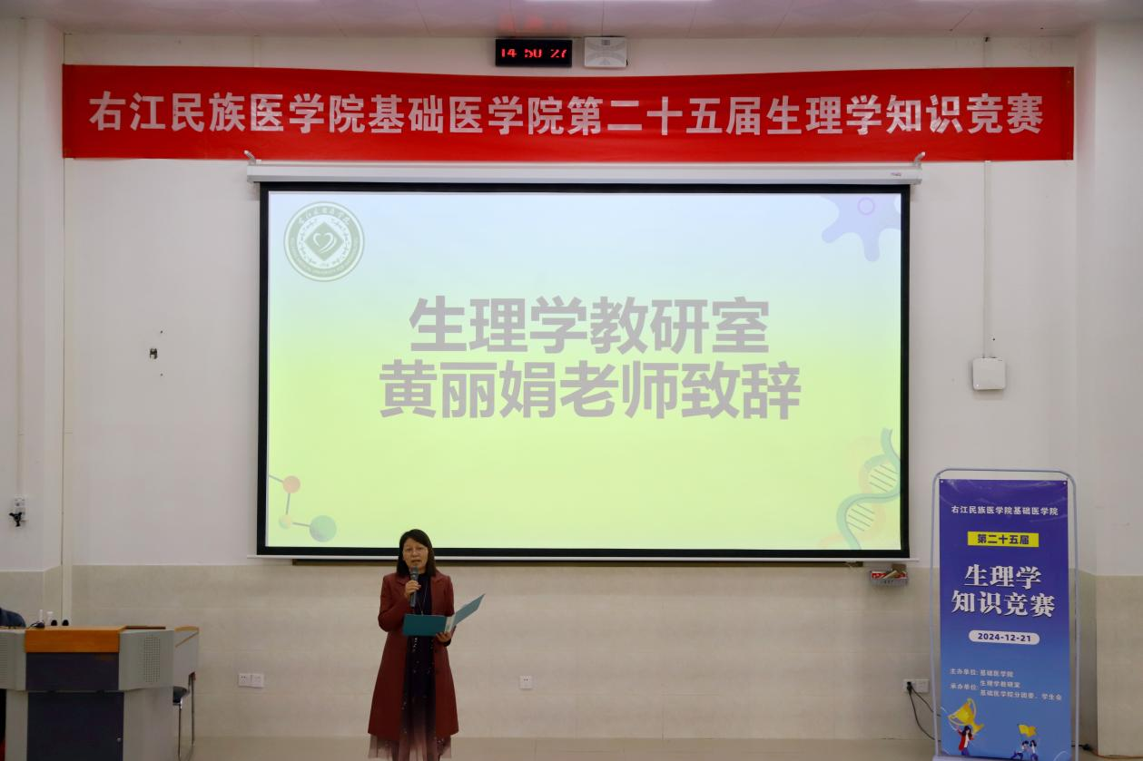 黄丽娟老师在开幕致辞中强调,竞赛不仅是生理学知识技能的较量,更重要的是激发同学们对生理学的学习热情和对生命科学的探索。同时,黄丽娟老师对同学们寄予厚望,并期待他们以饱满的热情和积极的态度赛出风采、赛出水平。