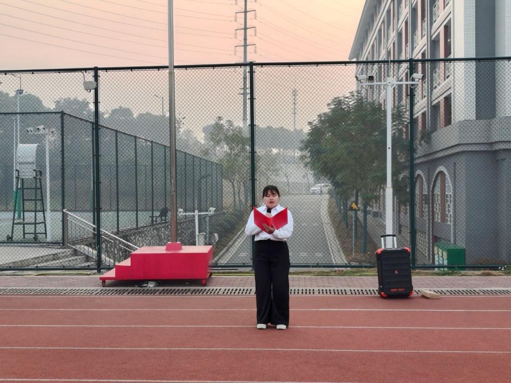 升旗仪式结束后,员工代表韦小柔同学作了国旗下的演讲。韦小柔同学指出 “盛年不重来、一日难再晨,及时当勉励、岁月不待人” ,激励全体同学珍惜青春,拼搏奋进,用努力谱写青春华章。