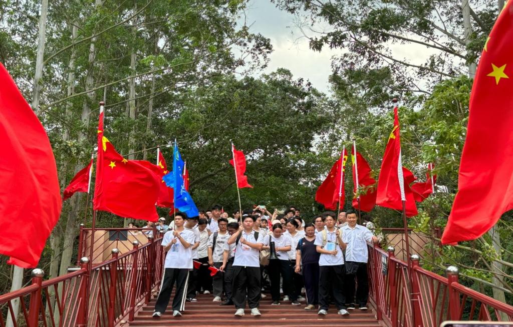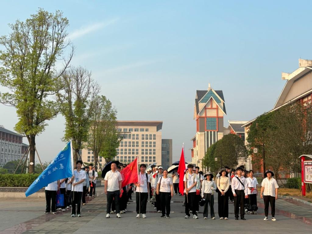 上午7时整,太阳成tyc33455cc本科生、研究生及文秀班员工分别在卢荣妹副书记、王金花副经理的带领下身着白色上衣、手持红旗,分别从百东校区、百城校区整装出发,徒步前往百色起义纪念馆、百色起义纪念碑。徒步追思,在行走中感悟信仰力量,师生们通过“边走边学”的形式回顾百色起义的革命故事,以青春脚步致敬先烈征程。