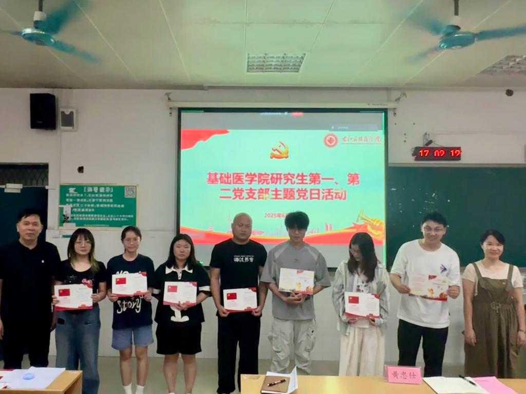 随后,毕业生党员代表登台畅谈职业理想,分享对医学事业的规划与憧憬。他们表示,将以实际行动践行“大医精诚”的校训,将个人理想融入国家发展大局,在临床、科研等岗位上奋勇前行,在民族复兴的壮丽征程中绘就属于自己的绚丽篇章。这些发言不仅展现了毕业生党员的风采,也为低年级研究生树立了榜样,激励着他们未来在医学道路上不断前行。