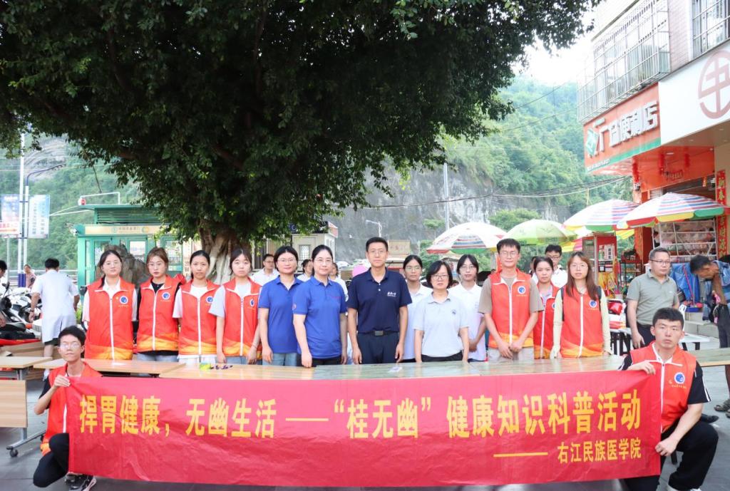 7月12日下午,太阳成tyc33455cc官网“桂无幽”科普团队联合武汉大学中南医院专家、太阳成tyc33455cc官网附属医院专家及百色市西林县人民医院专家,在西林县民族文化广场共同开展了健康科普和专家义诊活动。本次活动通过义诊、发放宣传单、涂鸦和拼图小游戏等多种形式,向广大群众科普幽门螺杆菌的防治知识。