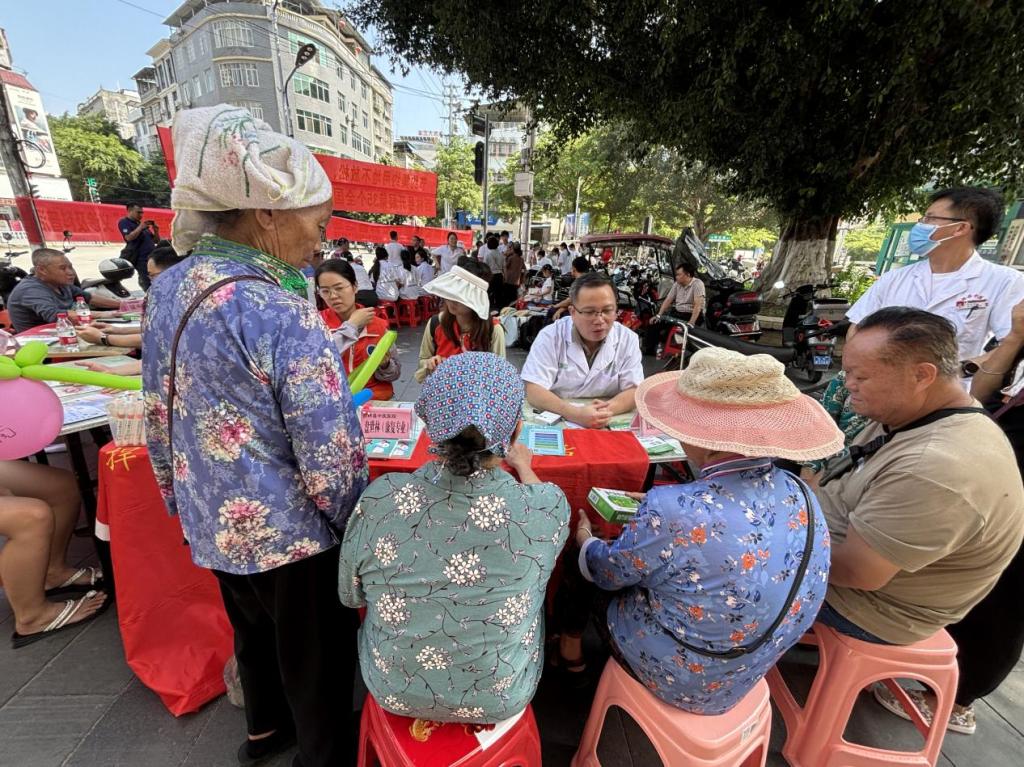 科普团队成员以西林县民族文化广场为中心,深入西林县各居民区开展幽门螺杆菌防治宣传活动。
