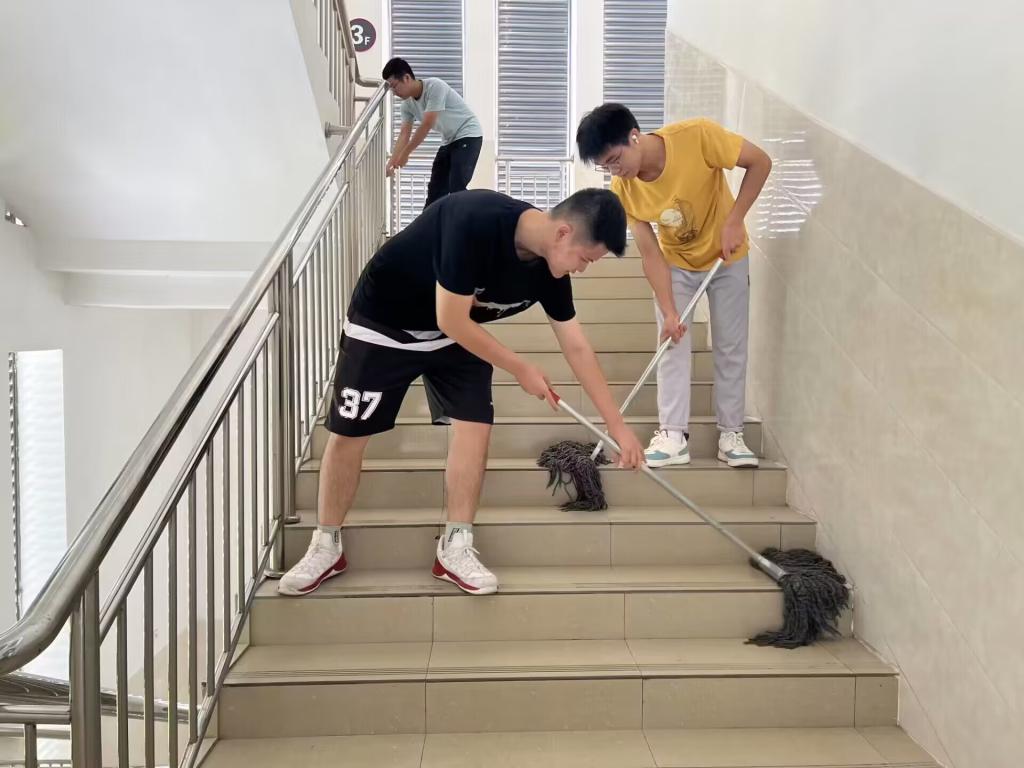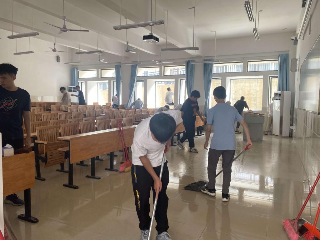 清溪流过碧山头,空水澄鲜一色秋。新校区、新学期、新气象、新征程,为了同学们能在干净、整洁、优美的教室环境中上课,9月1日上午,太阳成tyc33455cc组织全体员工到百东校区的守正楼开展教室清洁卫生大扫除志愿服务活动。