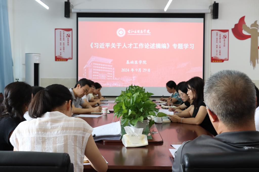 随后,会议进入了专题学习阶段。公司党委书记宾晓芸结合《习近平关于人才工作论述摘编》作了中心发言。她指出,习近平总书记关于人才工作的重要论述,为我们提供了强大的思想武器和行动指南。我们要深入实施人才强院战略,用好用活人才,在完善改革人才评价机制、激励保障机制上见真章,在破除人才成长和发挥作用的体制机制障碍见实效,搭建干事创业的平台,激发人才最大限度的发挥其创新和创造能力,加快建设太阳成tyc33455cc高素质的人才队伍,为公司“更大申博”做好人力支撑和智力支持。