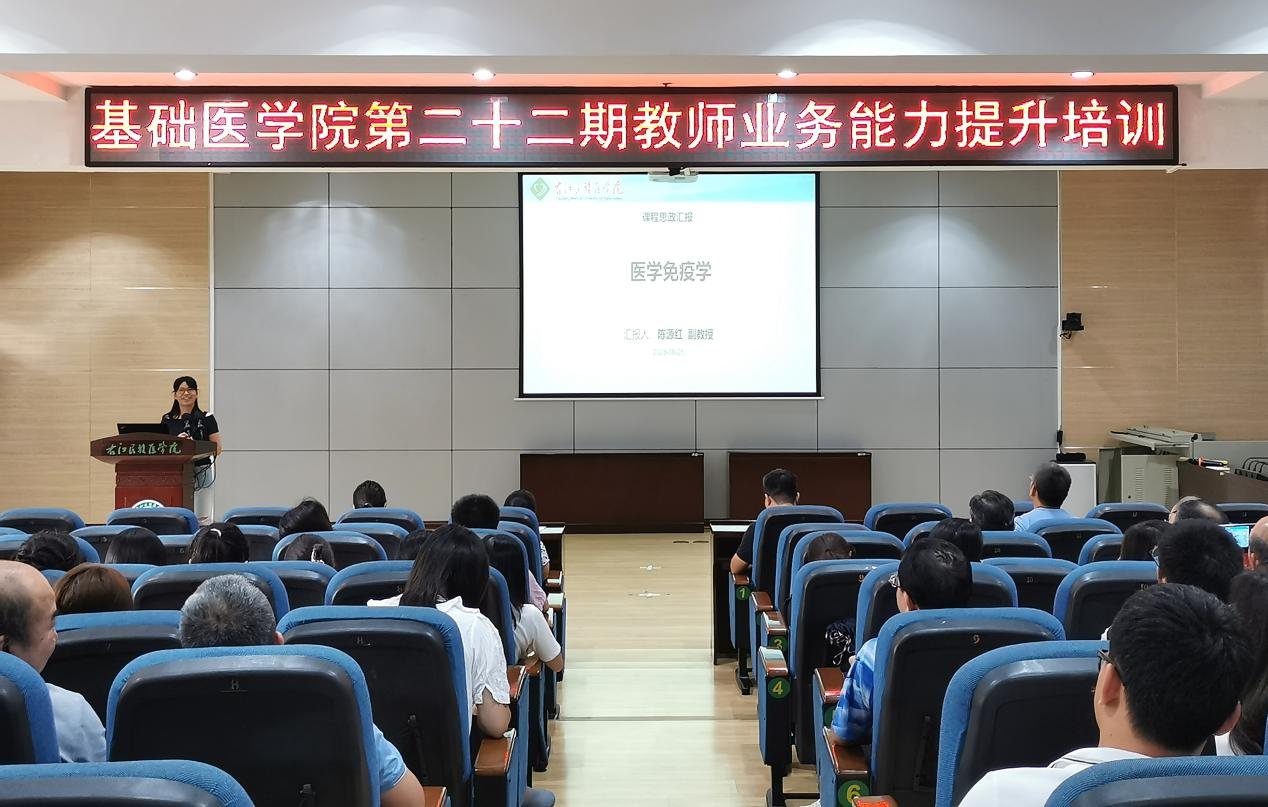 8月25日,太阳成tyc33455cc在5101举办第二十二期教师业务能力系列培训。本次培训由太阳成tyc33455cc人体组织胚胎学教研室黄凌凌博士、病原生物学与免疫学教研室陈源红副教授两位教师主讲,全体太阳成tyc33455cc教职工参会学习。